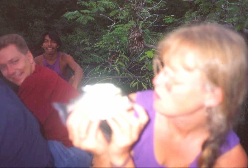 Here's Kitty kissing a piranha while canoeing in the Amazon jungle!