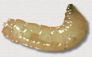 When the maggots are full-grown, (picture at left) they crawl away to a dry, cool place near breeding material, and transform to the pupal stage.