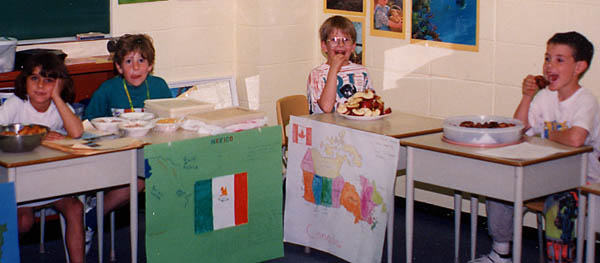 Lynn Newman, Grade 1 teacher, did her annual international project. Her students each researched a country, and made a display and food to share with the school.