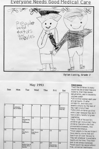 Made a Calendar "What Everyone Needs" with Global Education information, opinions and drawings by students. Donated $100 earnings to Friends of The Earth.