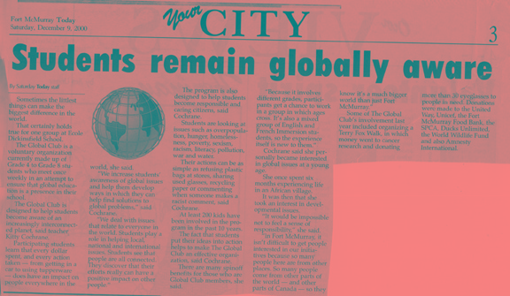 Collected and sent 60 pairs of used eye glasses to needing eyes via Canadian Federation for World Development